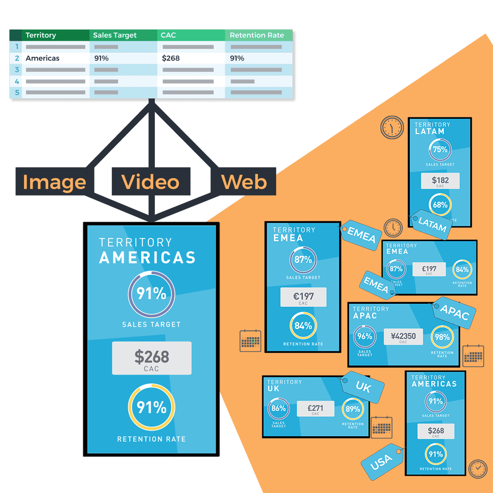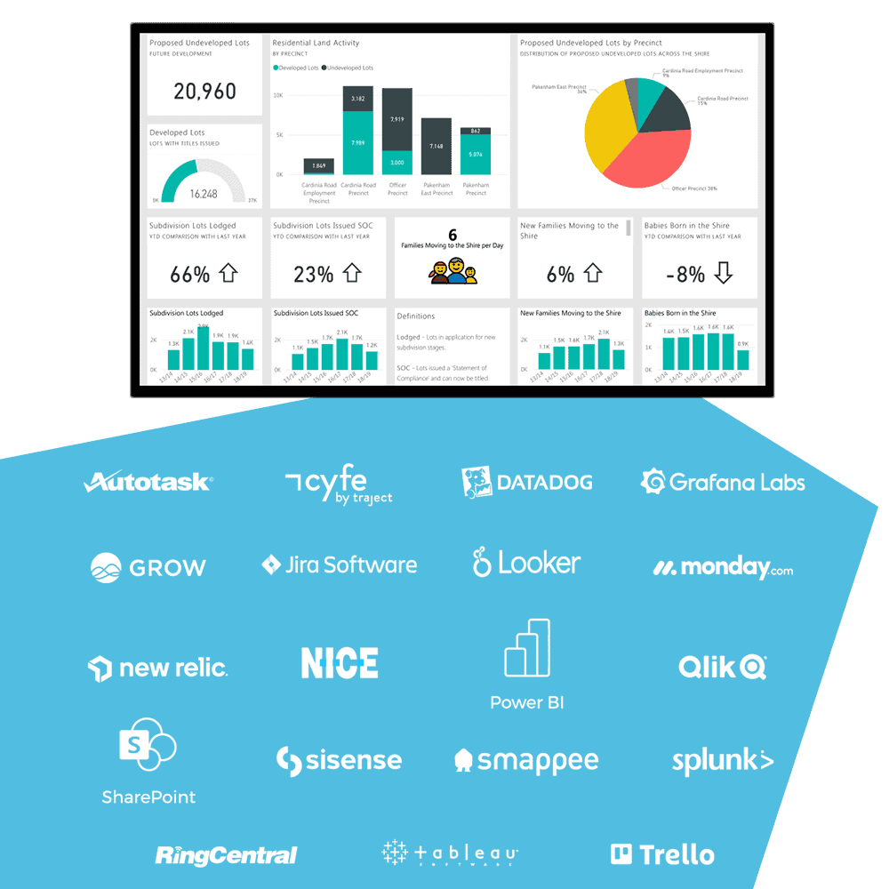 Centralise data insights from all your teams’ various business intelligence platforms, including Microsoft PowerBI and SharePoint and Tableau. With Signagelive Secure Dashboards, you can securely share data in real time across as many digital signage displays as you need.
